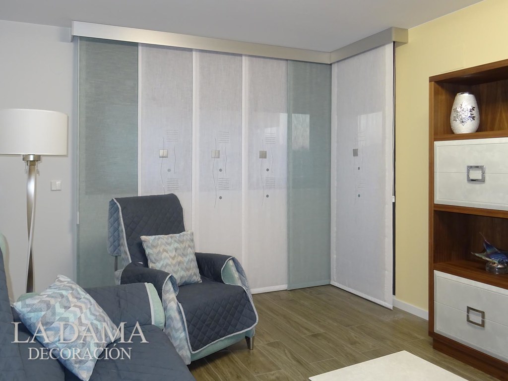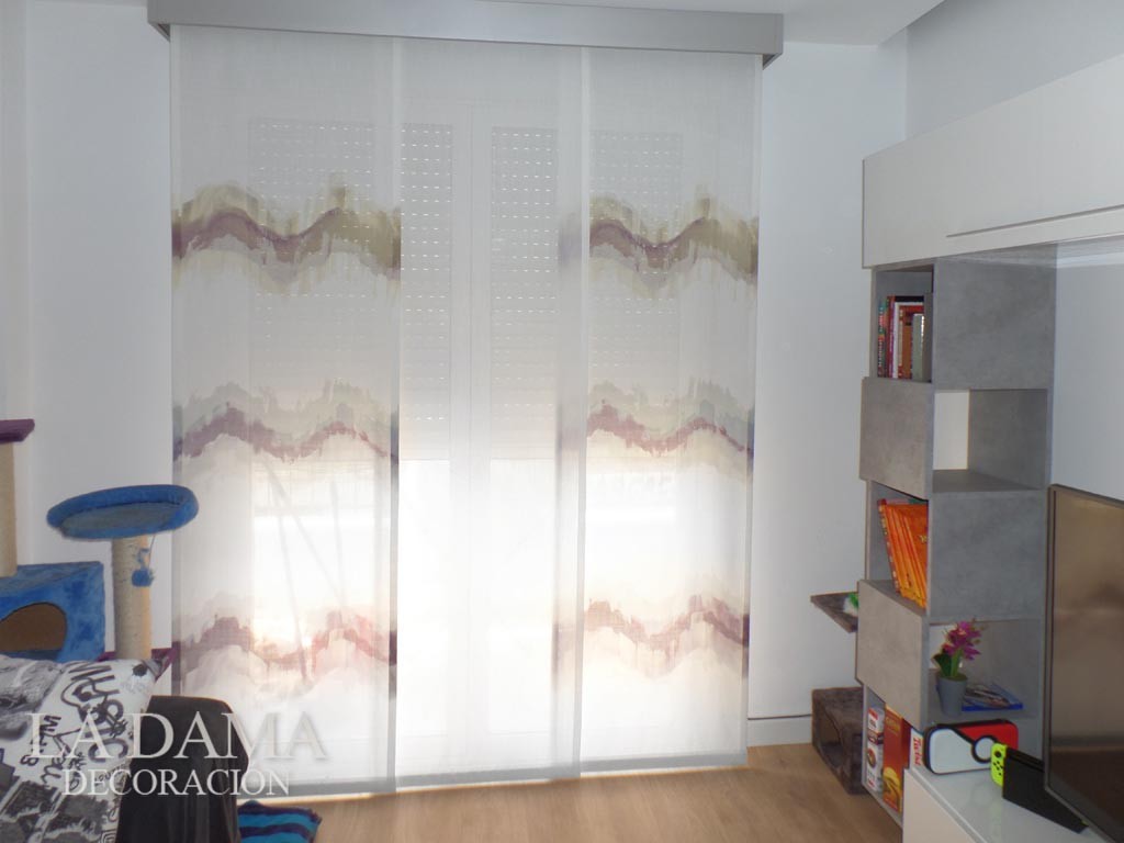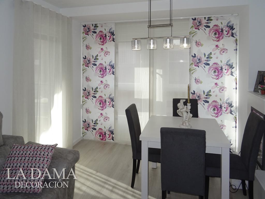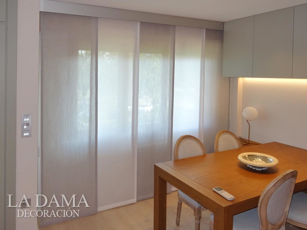 Los paneles japoneses son un sustituto de las cortinas, confeccionada en lamas independientes, con movimiento horizontal y que se recogen una sobre otra. Son muy recomendables en ventanas de salón con balcón o jardín, en cerramientos de terrazas, o para ventanas amplias.